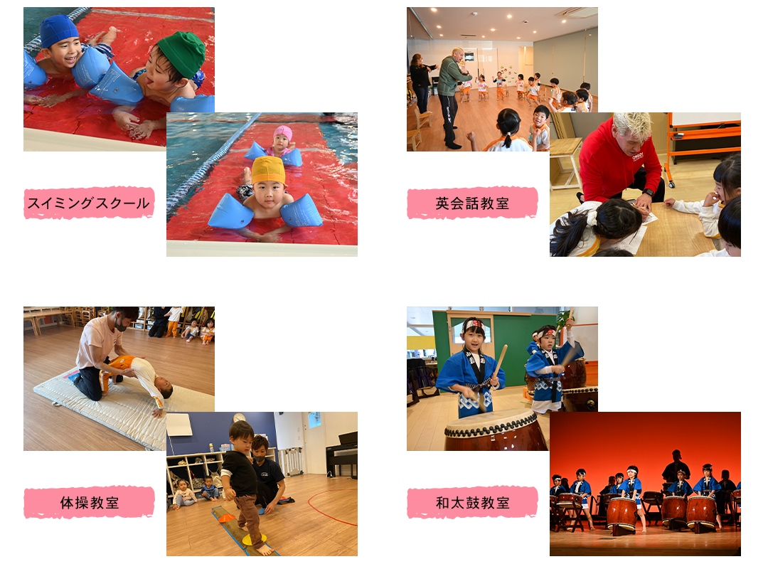 | 体操教室 | 2歳児、3歳児クラス 毎週金曜日 4歳児、5歳児クラス 毎週木曜日 |